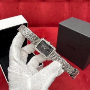 다이아몬드가 세팅된 스틸 소재의 팔각형 케이스